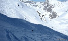 Abfahrt: Die erste steile Passage Richtung Partnun ist pistenartig ausgefahren. Der Schnee ist jedoch auf der ganzen Abfahrt schön pulverig. Es hat sehr viel Spuren. Mit etwas Ausschau findet man jedoch auch noch unverspurte Hänge. Insgesamt sehr schöne Abfahrtsverhältnisse bis nach Partnun und dann auf der Piste / präparierten Strasse zurück zum Parkplatz.