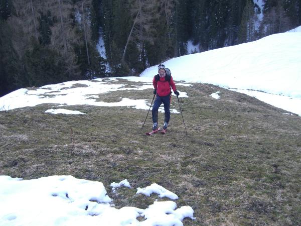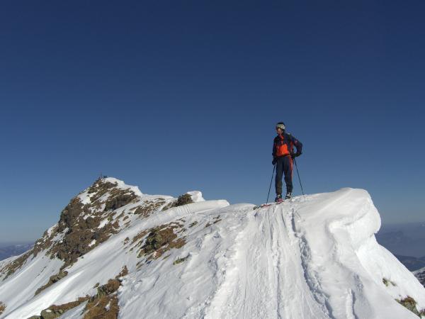Abfahrt eigentlich nur noch durch die Ostflanke zu empfehlen; wenn weiter so der Frühling einzieht, müssen unten die Ski getragen werden; Nordseite als Abfahrt nicht zu empfehlen;