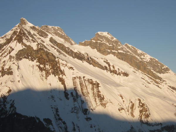Harscheisen braucht es momentan keine. Diethelm wurde in den letzten zwei Tagen auch gespurt. Die Abfahrt vom Mutteristock durch das "S"-Couloir wurde am Samstag gemacht, sieht aber ziemlich verfahren und wenig anziehend aus....