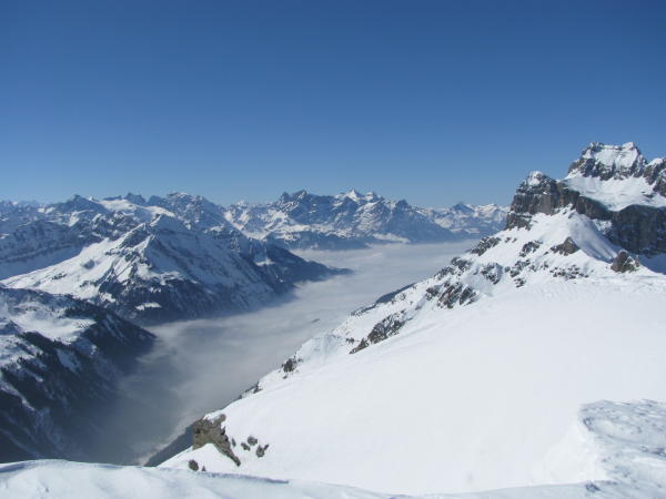 In der Abfahrt noch sehr gut fahrbaren Pulverschnee angetroffen, bis hinutner auf 1300 m.