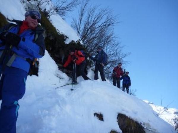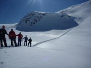 Es gibt immer noch Pulver aber die fleissigen Tourenfahrer haben wirklich alles in Grund und Boden gefahren, es herrscht an diesem Berg mässige Lawinengefahr. Es liegen durchgehend 20 bis 40 cm verfahrener Pulverschnee auf einer Zeitweise durchbrechenden Altschneeschicht die bis auf den Boden nachgibt.