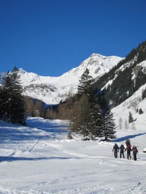 Auf Lawinengefährdung der Südhänge im Bereich des Gipfelhanges achten.
