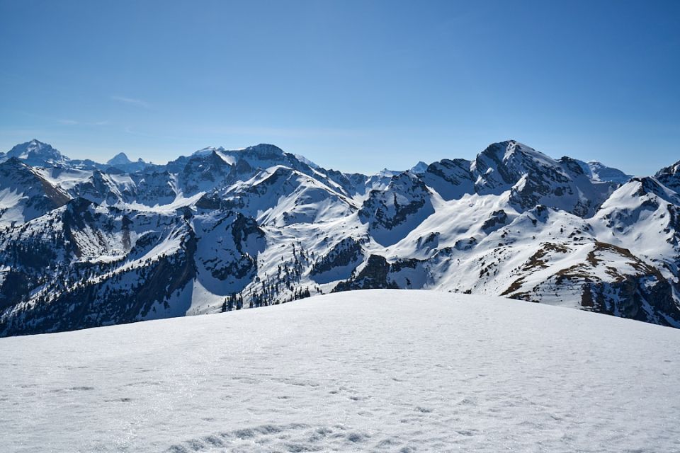 Am Morgen beim Start kurz unterhalb Brätliplatz -2° C bei schönstem Frühjahrswetter und leichtem Wind. Über Pkt. 1554 mehr oder weniger dem Sommerweg entlang zum PP Seeberg. Einigen aperen Stellen muss ausgewichen werden. Ab da direkt zum Seebergsee und der Alpstrasse entlang zu den Hütten bei Stierenberg. Hier gibt es mindestens eine Tragstelle. Von da Richtung Gubi und direkt zu Pkt. 2028 hoch auf den Grat. Dieser ist westseitig schon völlig ausgeapert. Daher immer nordostseitig hoch zur Hütte bei Pkt. 2058. Ab hier genügend Schnee bis zum Gipfel. Abfahrt: Gipfelhang hart und griffig.