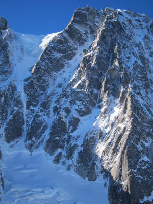 Gebietsinfo: Ginat und Aiguille Verte (Vivagel usw) würde auch gemacht. Meistens gutes eis zum Klettern aber schwierigkeiten beim Bergschrund wegen Schneemangel.