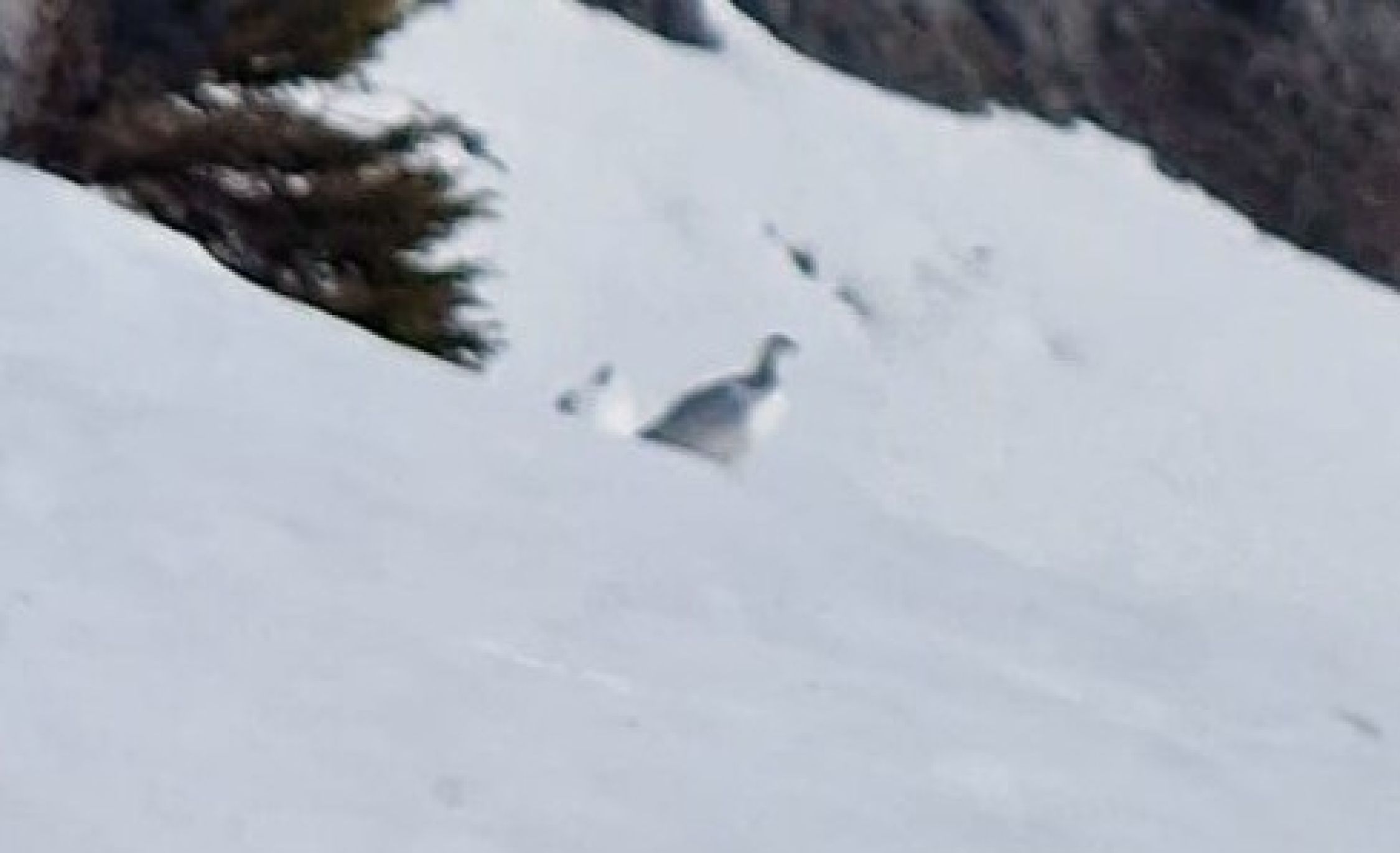 Wegem Wind umgekehrt, auf etwa 1700 m, schade dass mit der Pistenmaschine mitten im Schneeband gefahren wurde, dort ist es sehr ruppig, sonst schon leichter Sulz, recht schön zu fahren! Schön ein Schneehuhn beobachtet!