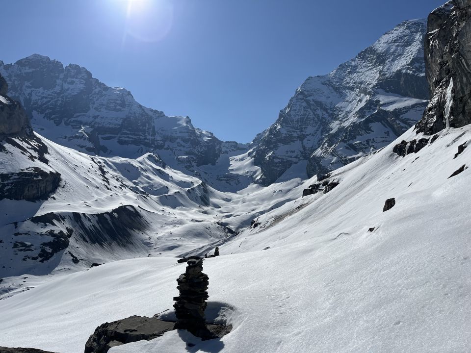 Solange die Mutthornhütte geschlossen ist, wird die Gamchilücke offensichtlich kaum begangen. Die Überquerung ist jedoch lohnend und ermöglicht diverse Routenkombinationen.