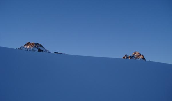 Sehr gute Tourenverhälnisse im Silvttagebiet. Gute Aufstiegsspur. Gletscher gut Eingeschneit, ab Skidepot guter Trittschnee.