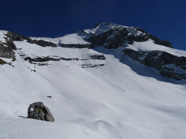 Nasschneerutsche vom Vortag im westgerichteten Gipfelhang