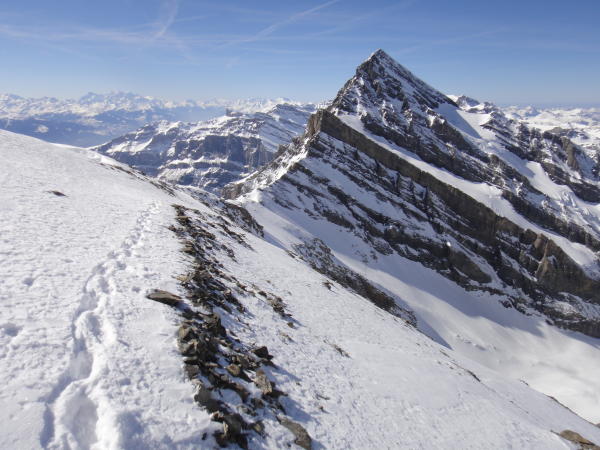 Gute Verhältnisse, einiges an Pulver und Sülzli angetroffen. Aufstieg in guter Spur bis auf den Zackengrat. Von dort an habe ich zu Fuss selber gespurt. Es war wunderbar, diese Aussicht, und nicht zu viel Schnee, gut zum gehen. Super schön und abenteuerlich, dort eine neue Spur anzulegen, da bin ich in meinem Element :-) Praktisch windstill.
