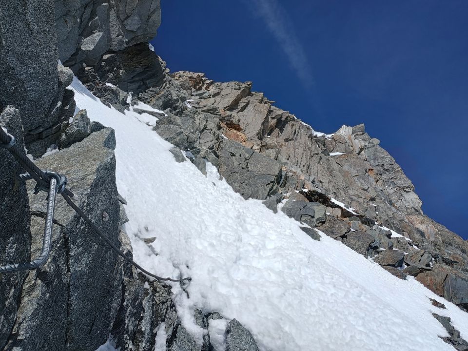 Gebiet oberhalb Tiefenbach noch gut eingeschneit. Sind ab Albert Heim Hütte gestartet. Tiefengletscher gut zu gehen und traumhaft zu fahren. Aufstieg nördlicher Tiefensattel derzeit sehr gut, siehe Fotos. Wir haben die Ski am Fuss des Aufstiegs zum nördlichen Tiefensattel gelassen, hätte keinen Sinn gemacht, oben un die Zeit der Schnee noch hart und keine schönen Schwünge möglich ...