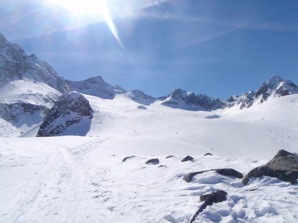 Der Zustieg von Seduck zur Hütte ist komplett mit Ski zu gehen und es sieht auch nicht so aus als ob sich bald lange Tragepassagen ergeben. Somit ist dieses Gebiet sicher noch länger in diesem Winter zu empfehlen.