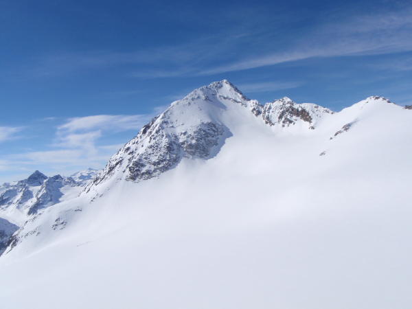 Der Grat zum Schrankogel hat momentan perfekte Verhältnisse, die Spuren sind ausgezeichnet.