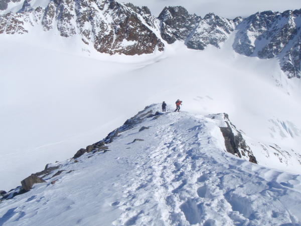 Die Tour darf nicht unterschätzt werden, da viel Zeit für "Material-Handling" eingeplant werden muss. Ski an den Rucksack, wieder runter. Seil anlgen, wieder aufnehmen. Steigeisen usw usw.