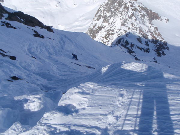 Die Nordostwand des Schrankogel wurde ebenfalls im Auf- und Abstieg gemacht. Gutes skifahrerisches Können und sichere Verhältnisse sind hier obligatorisch. Die momentanen Verhältnisse sahen allerdings nach allem anderen als "Spaß" aus.