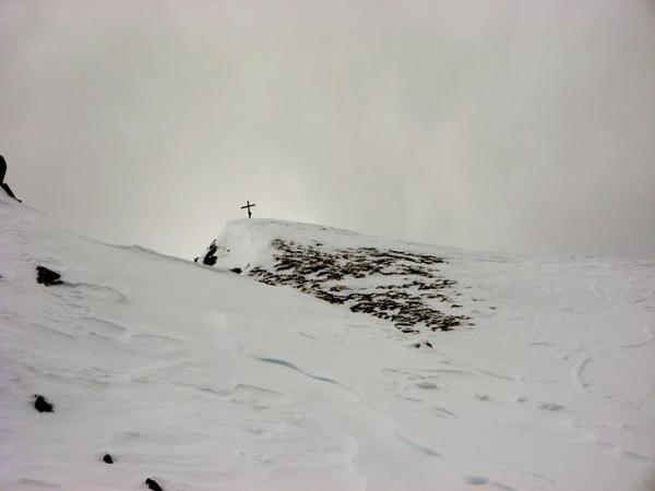 Am 12. unterhalb die Grotte in Mulde ca 1920 Schneebrett ausgelöst. Anrisshöhe 20cm, Breite 30m. Beiden werden wir 10m mitgenommen. Bis Knie eingegraben, keine Verletzungen
