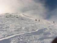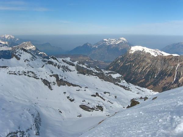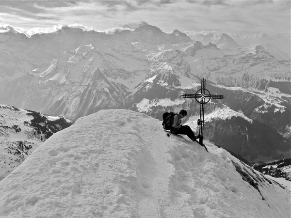 Föhnwind. Pistenähnlich. Viele Leute am Berg. Am Gipfel Schneearm.