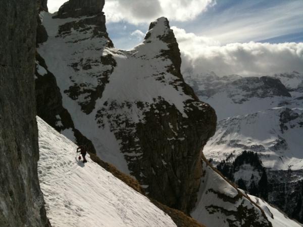Schnee sehr inhomogen, trotzdem gut machbar, ab P. 2360m Föhnsturm > 120km/h; deshalb umgekehrt.