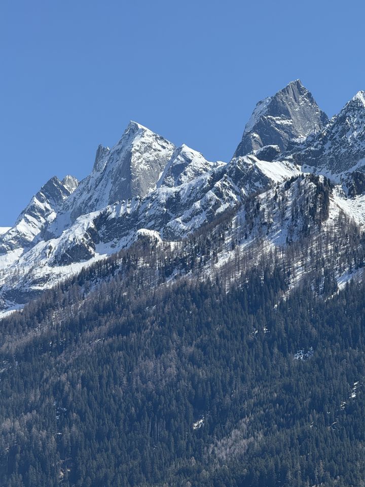 Sommerliche Wanderung auf Maiensäss oberhalb Castasegna mit Aussicht zum Pizzo Badile, T3. Start in Castasegna 11Uhr, 11 Grad, windstill, wolkenlos. Nach dem Brentanquartier steil hoch, viele Granittreppen zu. ersten Maiensäss und weiter im Kastanienwald weniger steil zum Maiensäss Das-ciun. Einige Esel, Ziegen und Kühe waren schon oben. Abstieg wie Aufstieg. Tolle Aussicht auf Pizzo Badile, Cengalo und Sciora.