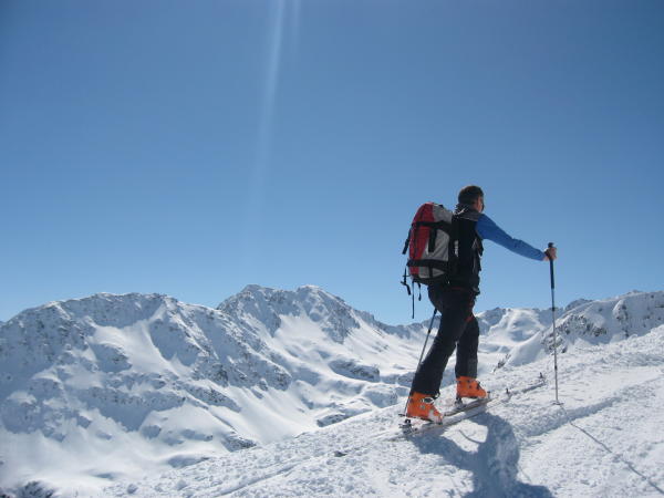 West und Nordhänge mit schönen Abfahrtsverhältnissen bis ca. 2200m, dann besser nordseitig halten, Westhänge nicht mehr so locker, guter Durchschlupf bei den Wasserfällen, im schattigen unteren Waldbereich immer noch pulvrig, auf dem gut eingefahrenen Waldweg reicht der Schnee bis ganz hinunter. Kaltenberg heute makellos weiß!