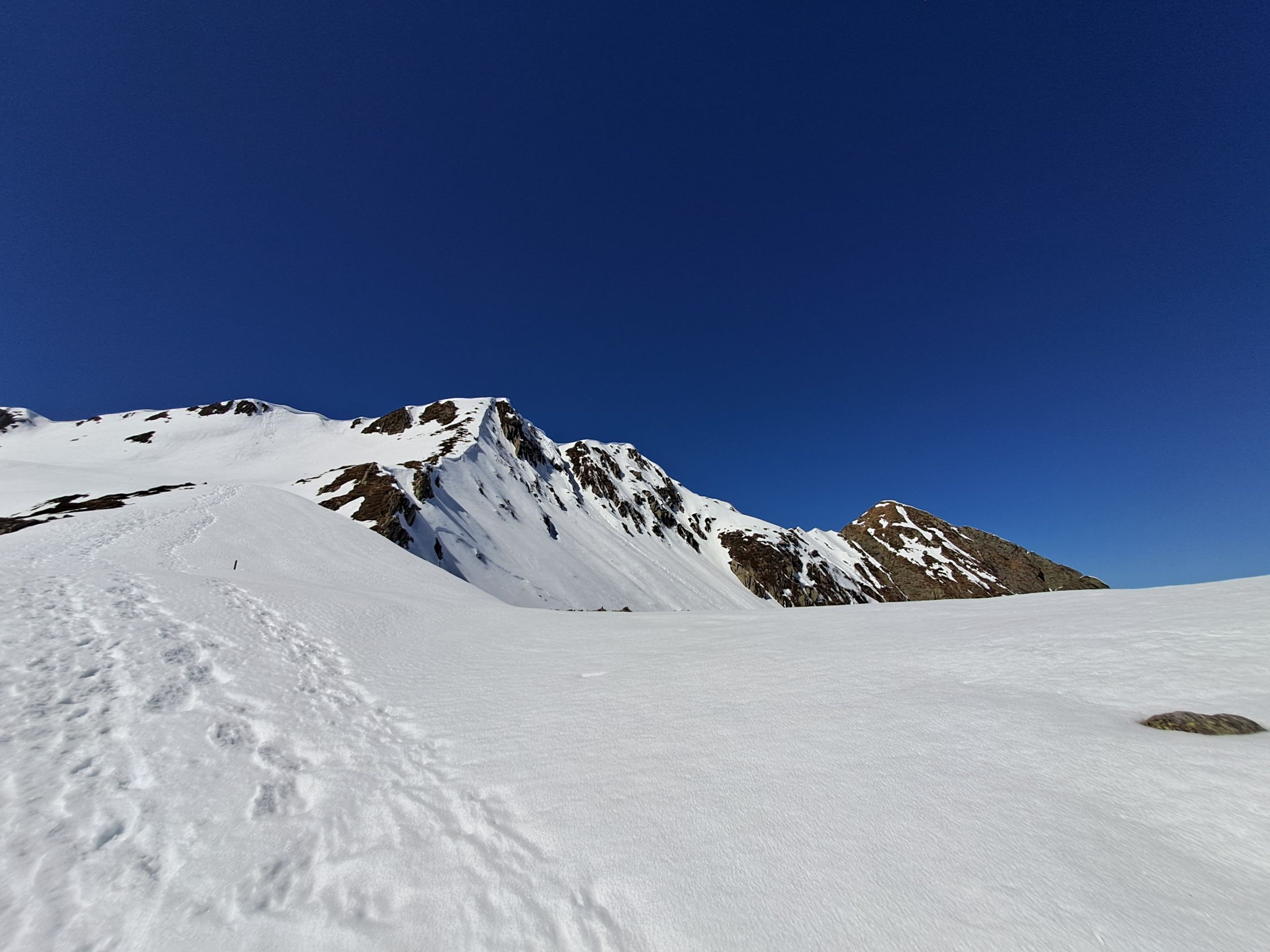 Italienergrat um 10 Uhr immer noch hart. Ansonsten ziemlich tiefer Weichschnee.