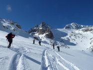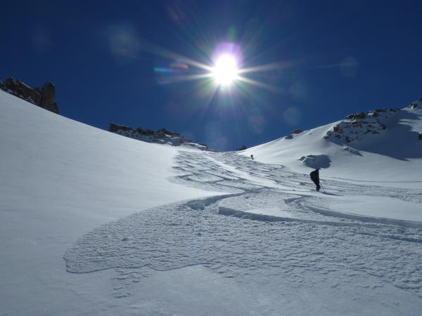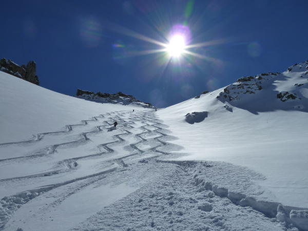 Im Aufstieg ist der Schnee gut und griffig dank dem Neuschnee vom Samstag.In der Abfahrt haben wir herrlichen Pulverschnee bis zum Hotel Tieferbach durchpflügt.Im untern Teil war es so lala,doch die Strasse hilft da weiter.Es waren sicher 50 Leute auf dem Gipfel.Es ist eine gute jedoch nicht allzu ringe Spur vorhanden.
