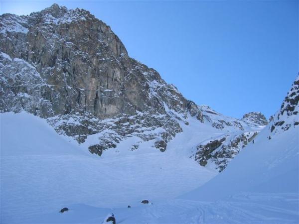 Lawinenabgang ca. 200 m links des unteren Felsriegels auf ca. 2500 m. Anriss direkt unterhalb der Steilwand in ca. 40°.