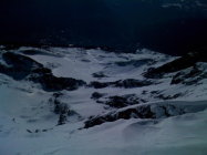 Mehrere Lawinenkegel aus den steilen Südflanken durch die tageszeitliche Erwärmung.