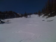 Ab Gürgütschboden durchgehende Schneedecke. Ab P. 2187 in der sehr steilen Ostflanke leicht gedeckelter Schnee, der sehr mühsam zum laufen war. Weiter oben bin ich dann in die südexponierten Steilflanken gequert, dort war es angenehmer. Diese Tour ist im Aufstieg und in der Abfahrt nur versierten Skitouristen zu empfehlen ( Sehr steil und Absturzgelände ).