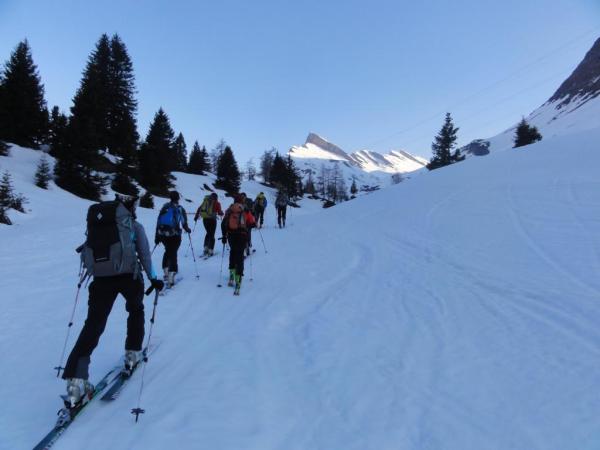 Genügend Schnee ab Parkplatz vorhanden. Im Aufstieg alles auf harter Unterlage problemlos zum Gipfel. In der Abfahrt mehrheitlich nur schöner Firn angetroffen. Super Verhältnisse! Die Tour konnte sogar ohne Harscheisen ohne Probleme gemacht werden.