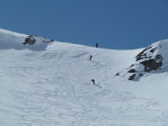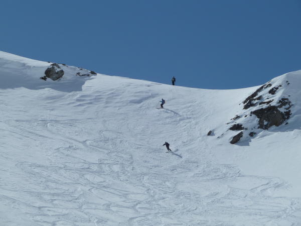 und fanden noch herrlichen Pulverschnee. Doch diese Abfahrt muss vor dem Mittag erfolgen, da die Hänge zum Teil recht steil sind.
