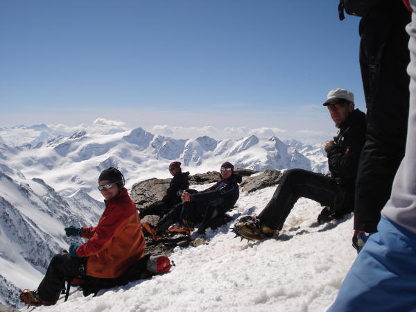Sattel zwischen zwischen Monte Pasquale und Monte Cevedale steil und hartgefrorener Schnee. Spalten in der N-Abfahrt vom Sattel. N-Aufschwung zum Sattel zwischen Monte Cevedale und Zufallspitze zunehmend hart/blank (Steigeisen empfehlenswert).