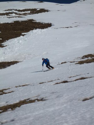 Firn, im Moment in den Südhängen noch genügend Schnee bis zur Strasse