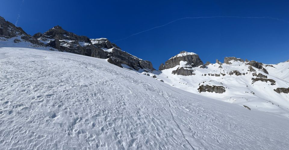 Schnäbeli braucht man Trittsicherheit und gute Verhältnisse. Aufstieg zur Läged Windgällen Sulz . Weiter zum Alpler Tor Nordhang von der Höch Windgällen war noch Pulvrig. Tunnel Ein-Ausstieg zurzeit Dank Schnee Armen Winter Begehbar.