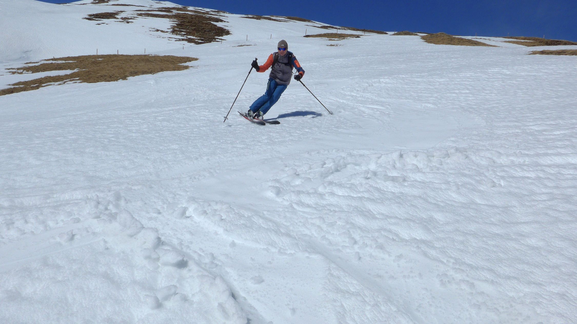 In der Abfahrt ist es dann so gekommen, wie geplant. Ein Traum im Sommerfirn, und das wieder vom Gipfel bis zur Autotür. Nach so viel Fun schmeckt dann auch das frisch gekühlte Calanda Bräu auf der Sonnenterrasse des Gasslihofs unbeschreiblich :-)