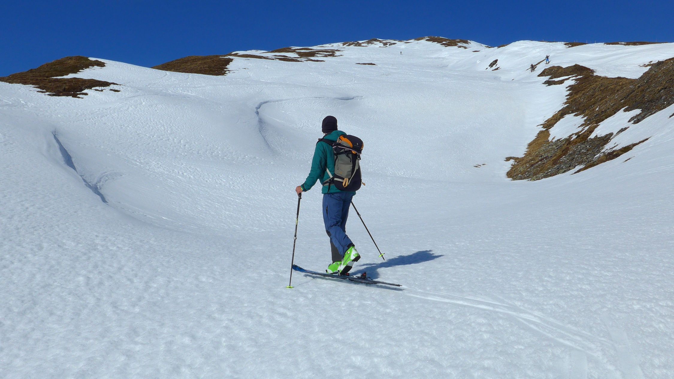 Heute starten wir beim Staubecken im hinteren Safiental und steuern zunächst die Hütten von Piggamad an. Dort wandert man über die Brücke der Rabiusa und steigt bald rechts aufwärts zur Alp Piänetsch auf, die fantastisch in 2047m Meereshöhe liegt. Fast kerzengerade geht es nun über die Traumhänge der Grossalp zum Gipfel des Strätscherhorns. Wer "das Reissen" hat, macht noch 200 Höhenmeter mehr und stoppt seinen Uphill erst am Tomülgrat, bei Punkt 2738 ;-)