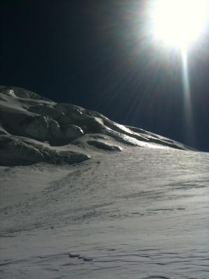 Strahlhorn (4190m): Hohlaub - kurz vor Adlerpass links durch die Flanke