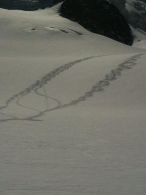 um 10 uhr eine nasschneelawine unterhalb vom Rimpfischhorn.vorsicht beim Aufstieg zurück zur Britanniahütte (sehr warm)evt noch kleiner Abgänge