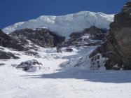 Abgegangene Lawinen aus dem felsigen Teil der Westflanke,ev. vom Freitag oder Donnerstag. Älterer Abgang unter dem Eisabbruch. Am Samstag bei uns alles Ok und ruhig.