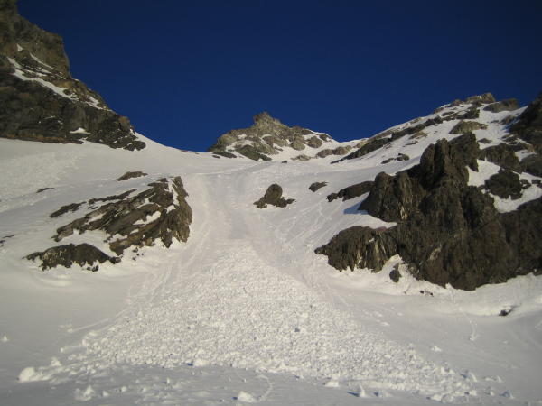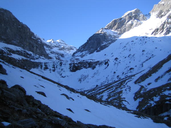Bis Ober Stafel bereits mehrheitlich Skitragen angesagt. Gegen Mittag waren wir auf dem Panixerpass um die Sonne zu geniessen und danach Übernachtung in der heimeligen Schutzhütte auf dem Panixerpass. Am Morgen Aufstieg anfangs Griffig, oben mit Harscheisen zum Gipfelhang. Skidepot auf ca. 3100m, danach zu Fuss zum Gipfel (Trittschnee). Frühe Abfahrt bei besten Schneeverhältnissen.