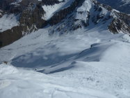 Morgen leicht gefroren. Abfahrt bereits um 11 Uhr. Oben noch leichten Pulverschnee, später leichter Harsch und weiter unten Sulz.