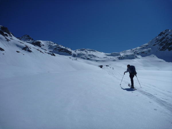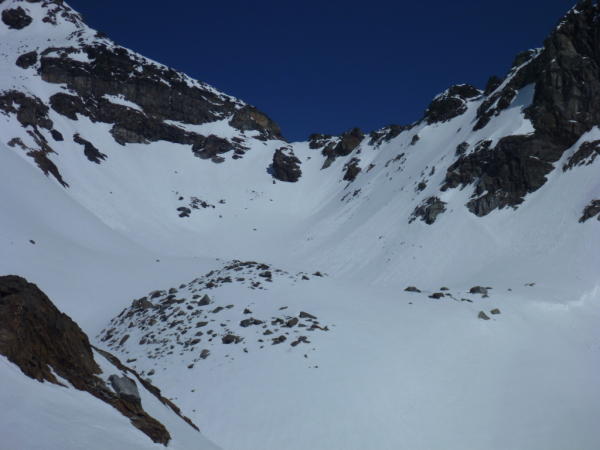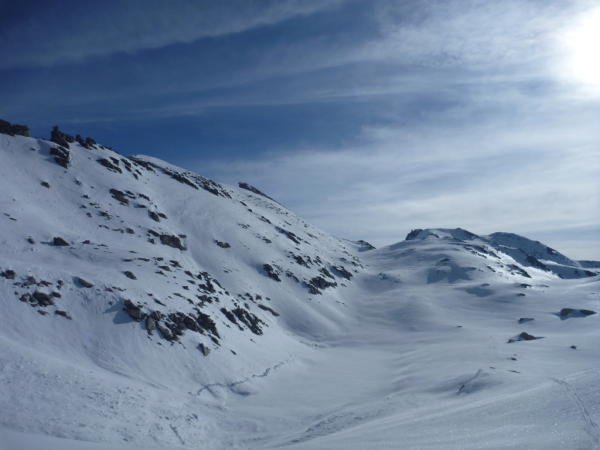 Westseite der Eggerscharte sieht gut aus, jedoch keine Spuren der vergangenen Tage.