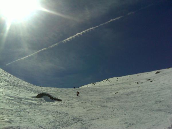 Keine Lawinen oder Schneebrettgefahr auf der normalen, stark befahreren Abfahrtsspur. Bei sonnigen Tagen wie heute ausserhalb der "Piste" wohl überall Lawinengefahr.