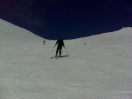 Viele Abstiegsspuren, teilweise wie eine Piste, hinunter Richtung Vignette. Der Schlusshang oberhalb des Col de Vignette kann direkt befahren werden, der Umweg südlich um die Felsen ist nicht notwendig.