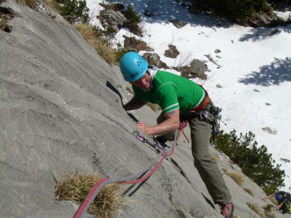 Wir sind am Samstag Spreizrinne und Flugroute geklettert. Am Sonntag haben wir uns mit dem Blümlipfad aufgewärmt, um uns anschließend in Technical Ecstasy die Via Priska bis zum Grat hinaufzumogeln :-))! Abseilen jeweils wieder über die Routen. Der Grat ist zwar schneeig aber gespurt, einige Kletterer haben den Fußweg vom Gipfel herab für den Abstieg benutzt.