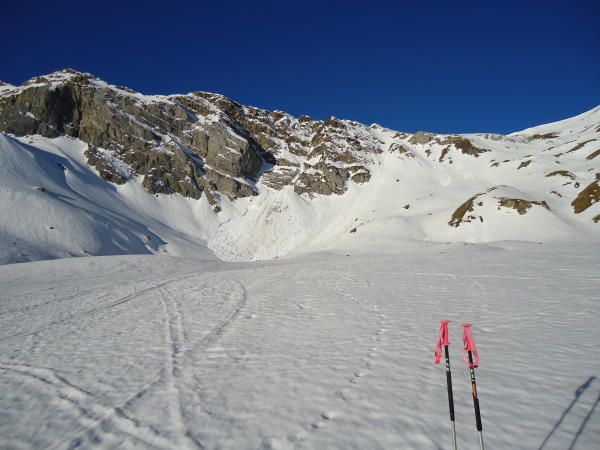 Frühlingsverhältnisse. Nur bedingt tragender Deckel (Aufstieg i.O.); darunter Sumpf. Abfahrt spätestens um 10:00h. D.h. Gondel auf Engstligenalp um 06:30 (mit Fr. 20.- Wegelagererzuschlag; verkehrt nur Sa./So.).
