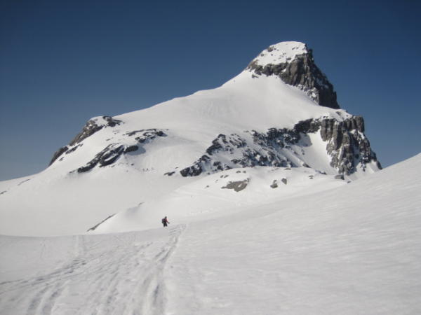 Guter Trittschnee zum Gipfel, problemlos ohne Steigeisen.