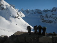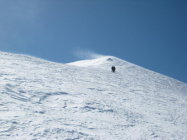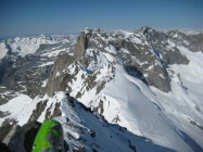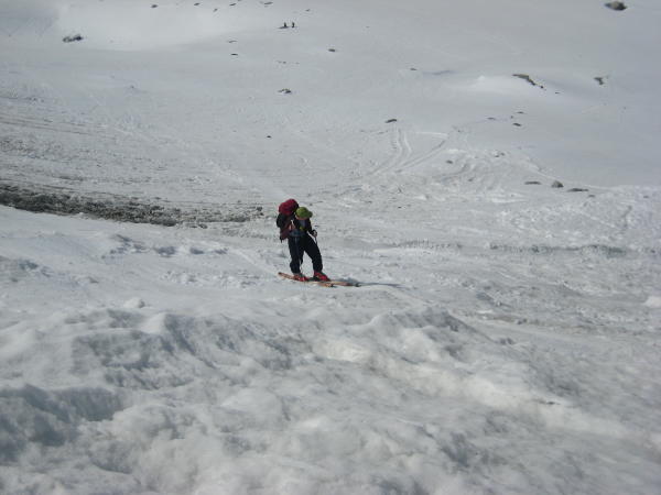 Gletscher sehr gut eingeschneit, frühmorgens trotz sehr milder Temperaturen war die Schneedecke bis in Gipfelhöhe gut durchgefroren, Hüttenabfahrt/-aufstieg nach 12 Uhr nicht mehr empfehlenswert (Schnee trägt dann nur noch teilweise), zum Teil recht starker böiger Wind aus N, frühmorgendliche "Eis"-Abfahrt von der Hütte auf den Gletscher verlangt gute Konzentration