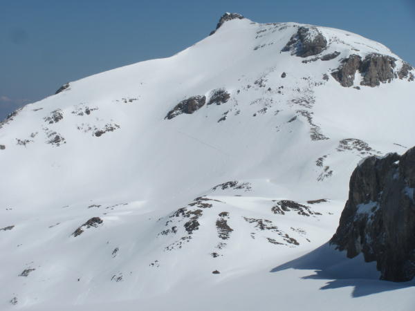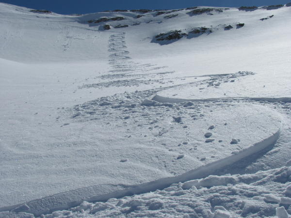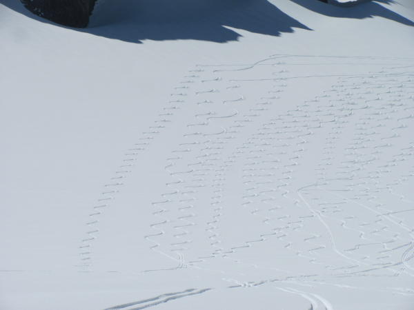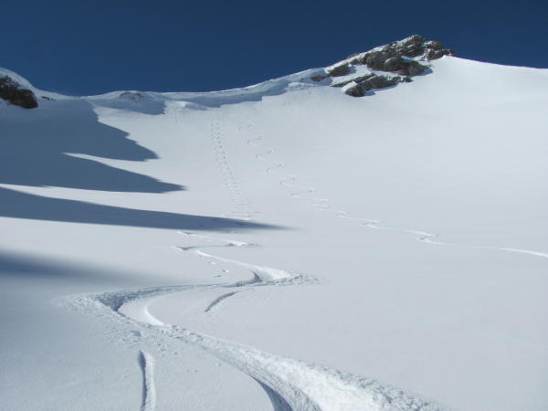 Oberhalb Wildhornhütte 20 cm Pulverschnee einfach super,sonst wär ich nicht nochmals Aufgestiegen.Darunter pulver feucht und ganz unten Nass.Aber alles gut zum fahren.