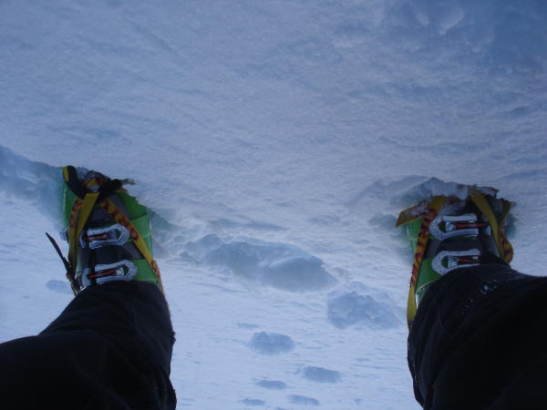 Alles gut gefroren. In der Rinne hart und manchmal etwas knollig, mit einer ca. 5 - 10cm griessigen Pulverschneeschicht.