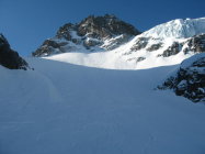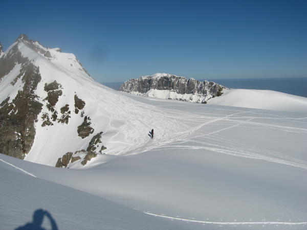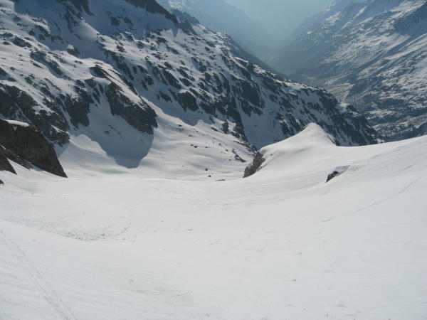 Abfahrt über den Stössenfirn bei bestem Sulzschnee bis P. 2165 m.